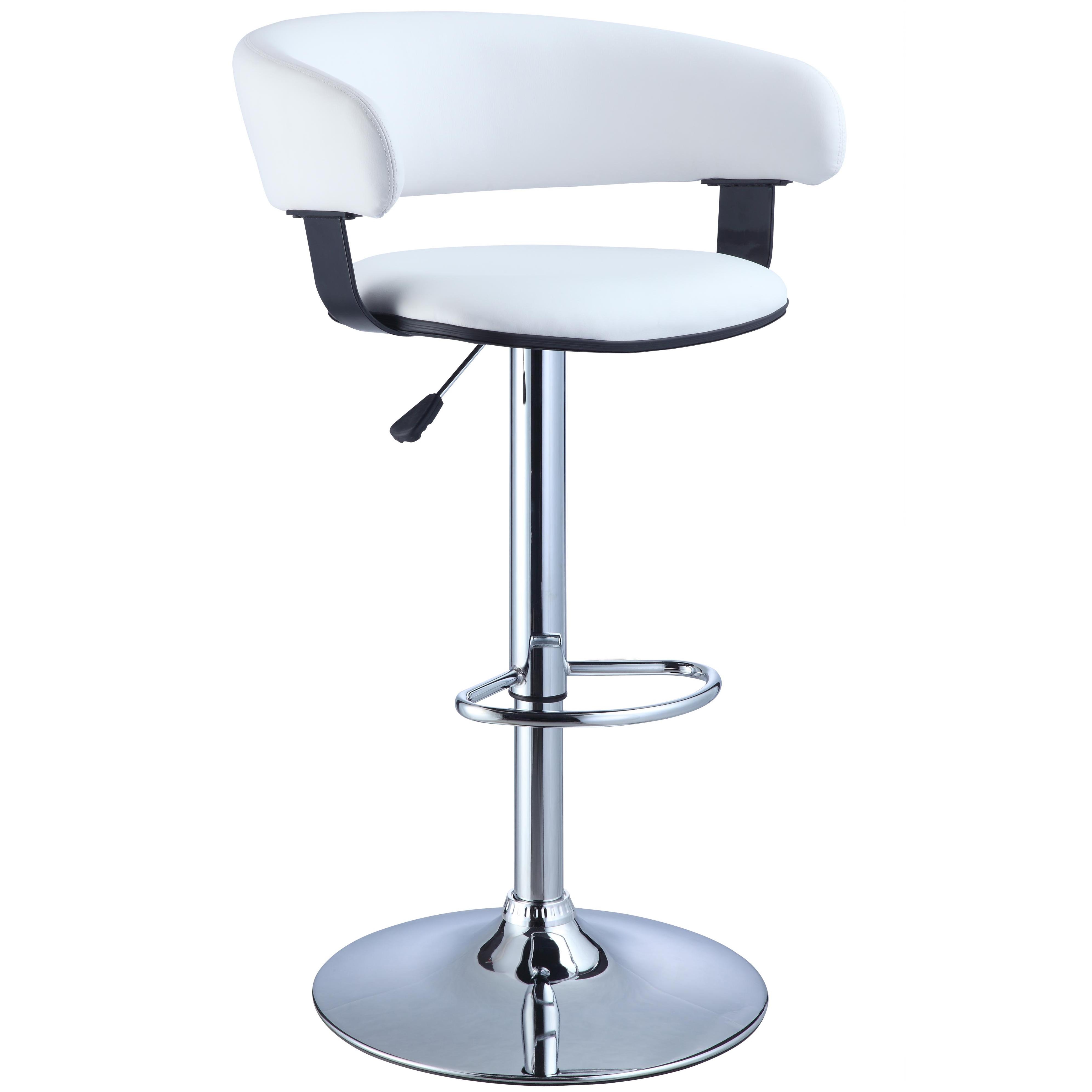 moreThe Barrel Back Bar Stool is all about style and comfort, and with a contemporary design, it brings an impressive look to update your home. A luxurious plush seat is upholstered in a rich white faux leather, while a plush curved seat back provides added comfort for you and your guests to enjoy. The seat height as adjustable from 34 5/8" to 41" depending on your seating needs, offering convenient customizable seating options for any occasion. Finished with a versatile chrome, this piece is an easy addition to any kitchen, bar, or dining area.