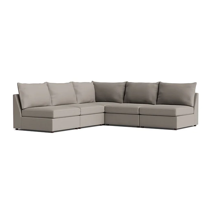 moreBring the love and laughter outside on the Beckham L-Shaped Sectional. With Sunbrella fabrics in a wide range of colors and featuring a modular design, this sectional fits easily into the modern patio. Deep seating inspired by cozy indoor upholstery means plenty of space for family and friends to relax in for hours.