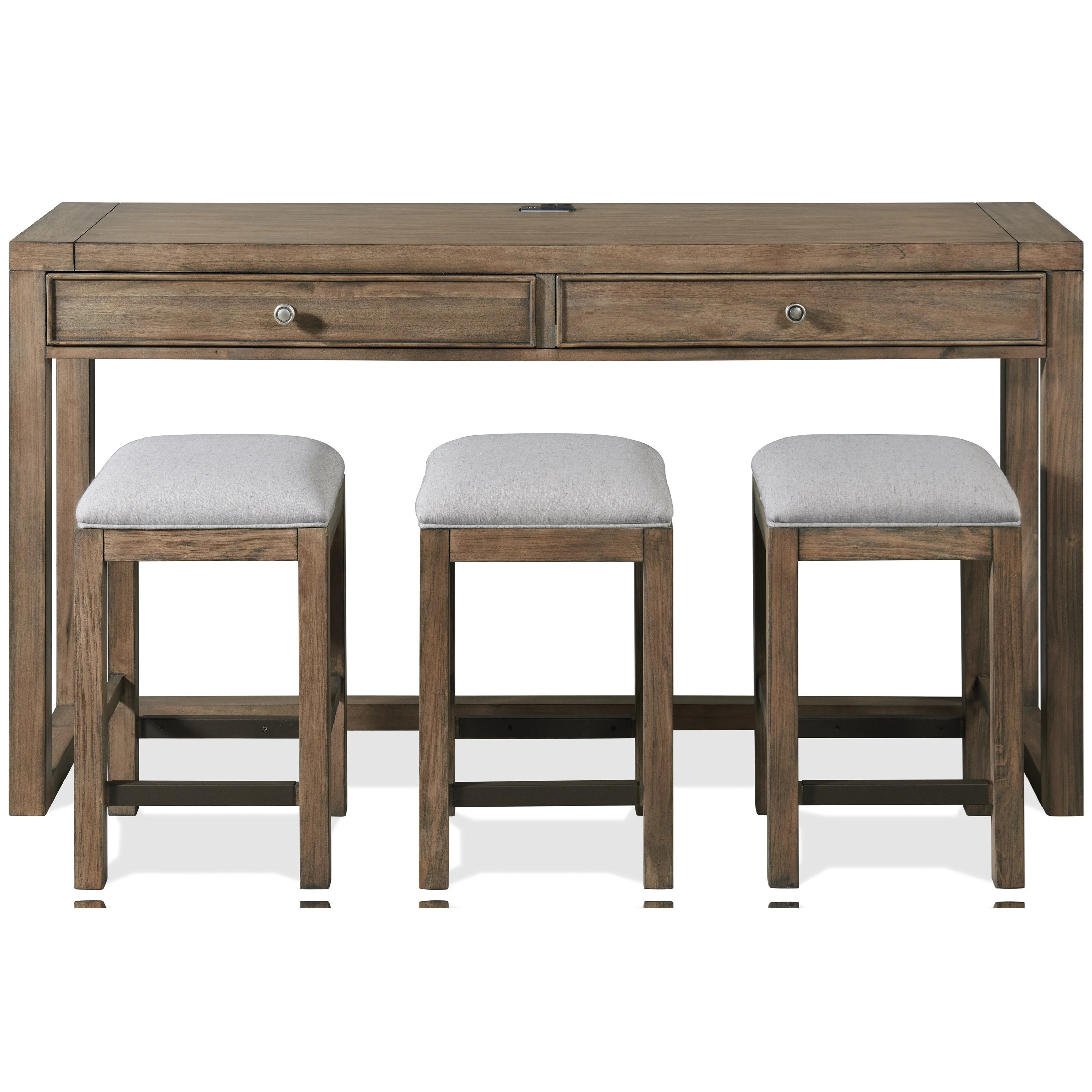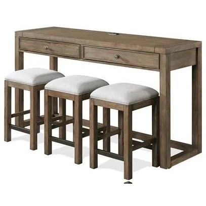 The Denali Contemporary Rustic Console Table with Stools, Outlets and USB Chargers, made by Riverside Furniture,