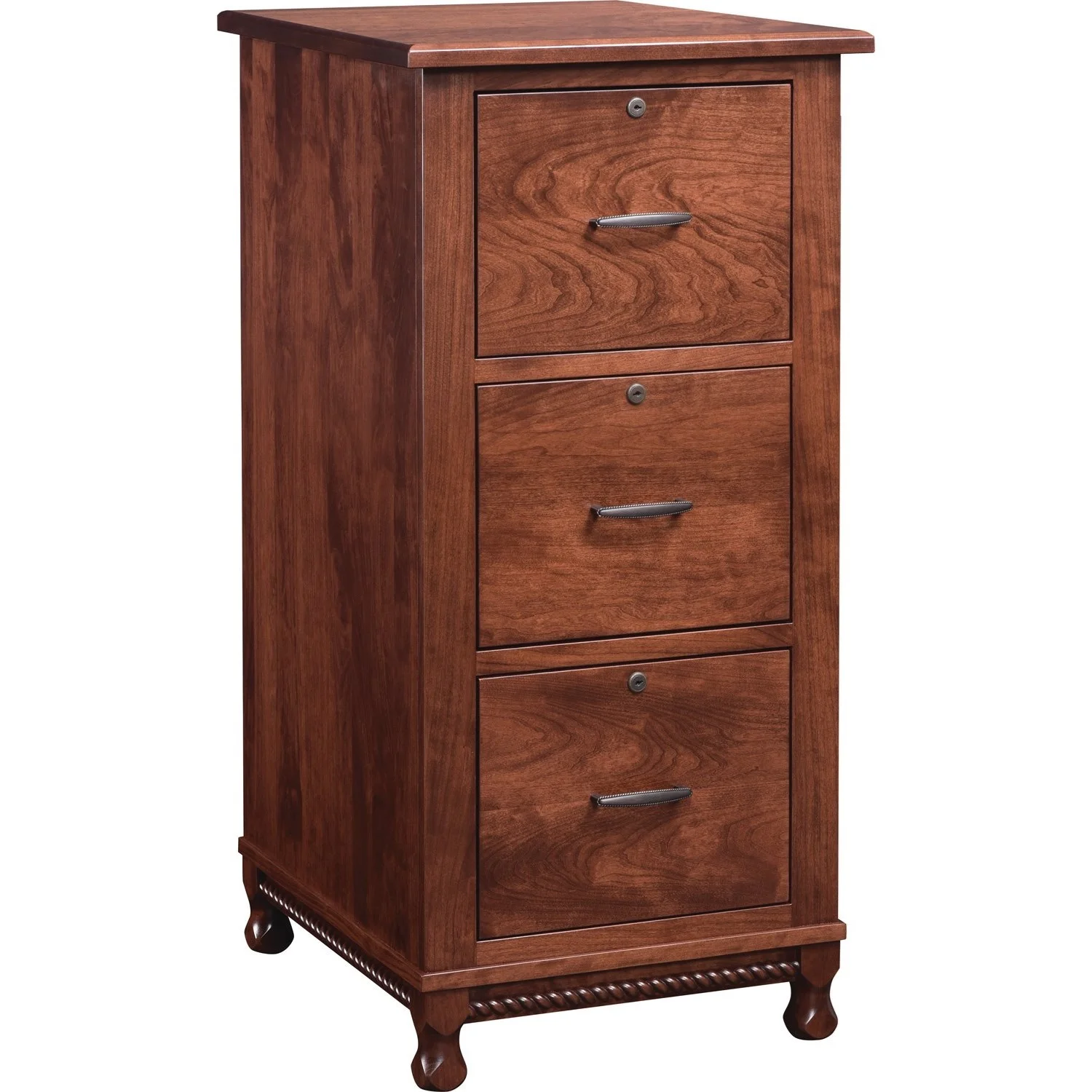 moreStore all of your important files securely and in timeless style with this 3-Drawer File Cabinet. The piece provides you with three file drawers, all of which are locking so you know your documents are safe. Furthermore, this piece is available in an assortment of wood types, finishes and hardware options, allowing you to create the look that suits you and your room best.