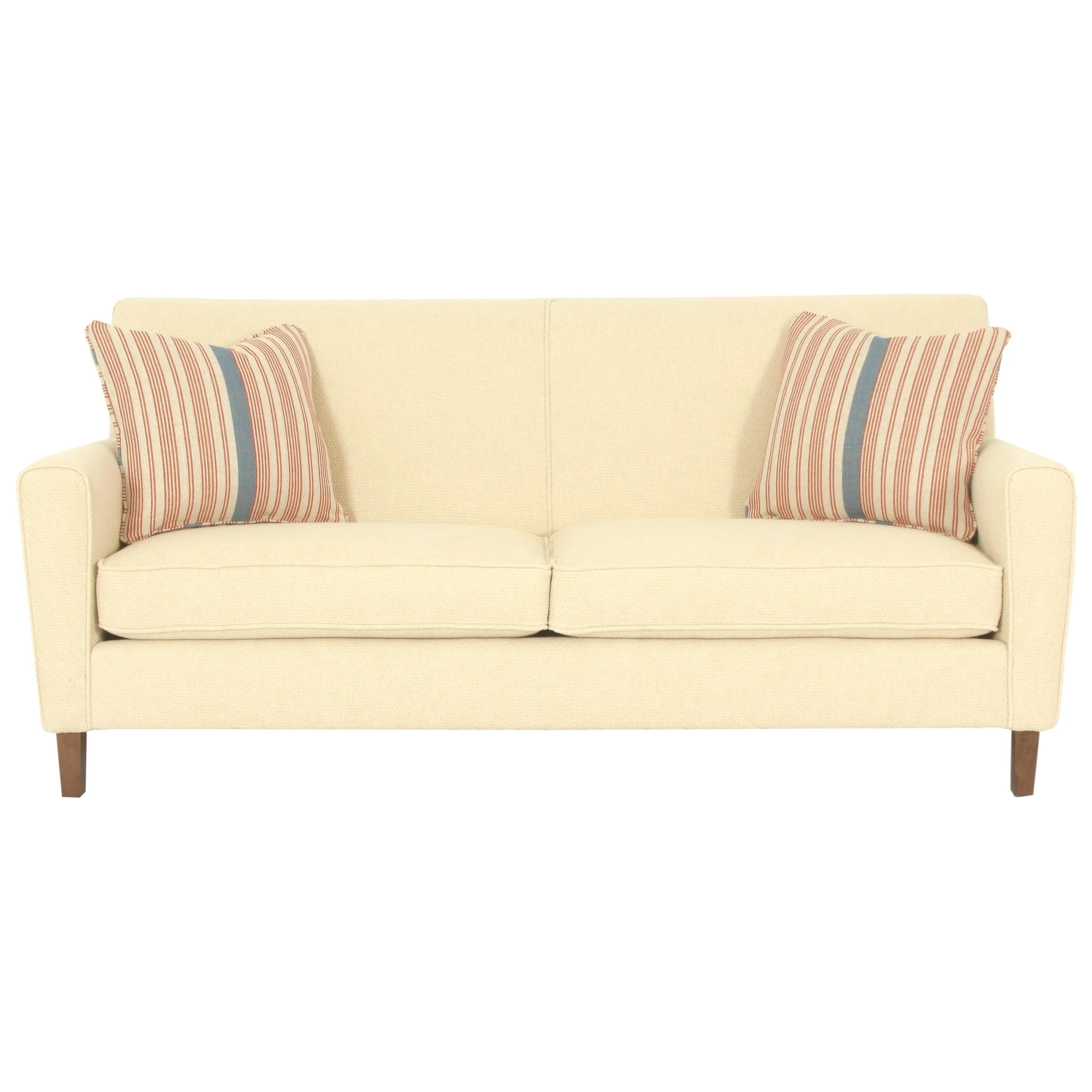 Accent your home with this sofa. Made with two cozy boxed seat cushions and a cushioned tight back, this piece is perfect for lounging. Straight track arms, tapered legs, and welt cords add depth and a touch of contemporary style. Available in multiple fabrics, this sofa is sure to match with your existing decor.