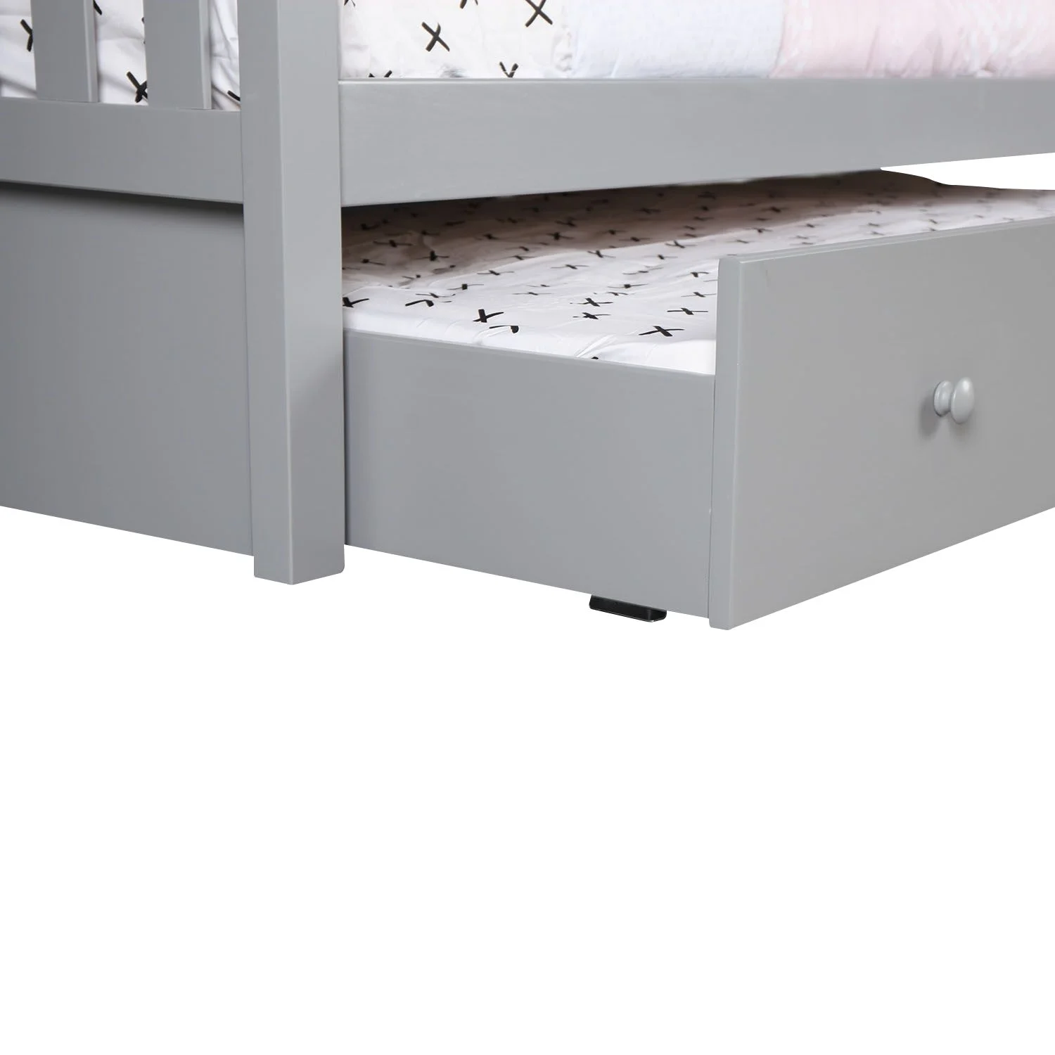 moreThis casual bunk bed is perfect for kids' bedrooms, featuring a twin over full bunk bed design with a convenient trundle for extra sleeping space. The sturdy solid wood construction ensures durability and stability, while the gray wood tone gives it a versatile and modern look.